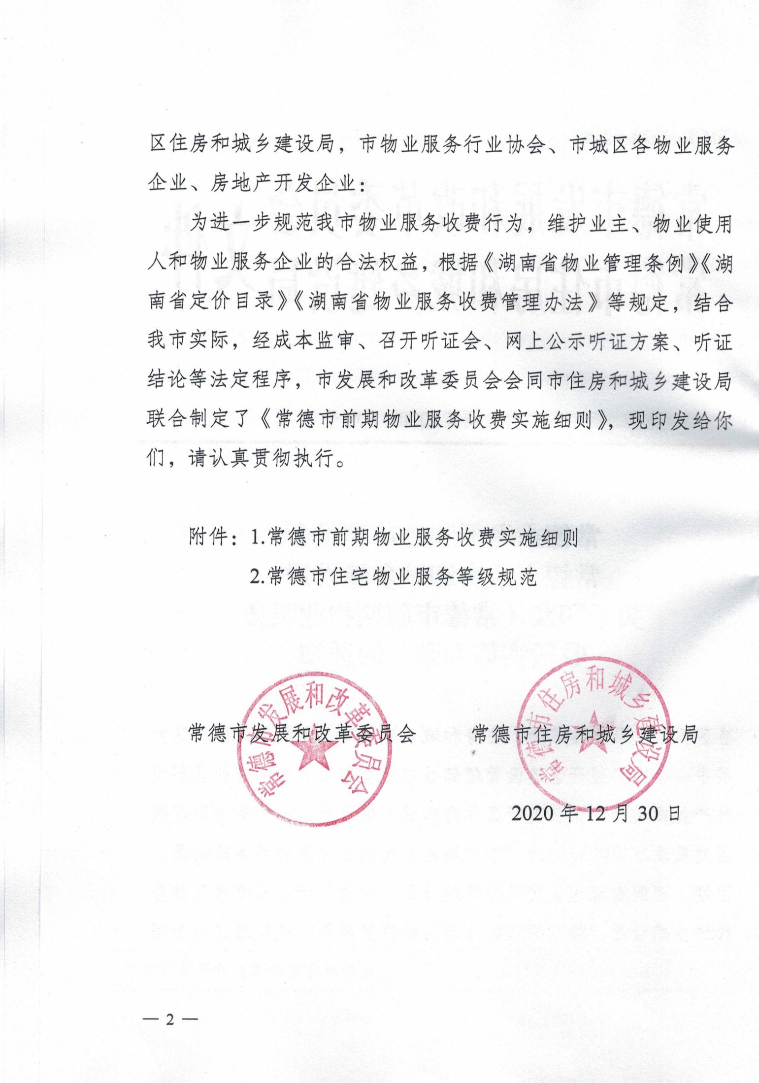 常德市發(fā)展和改革委員會 常德市住房和城鄉(xiāng)建設(shè)局 關(guān)于印發(fā)《常德市前期物業(yè)服務(wù) 收費(fèi)實(shí)施細(xì)則》的通知